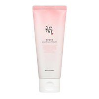 Beauty of Joseon Apricot Blossom Peeling Gel is a gommage type exfoliant that improves skin texture and controls excess sebum. As you work the plant-derived cellulose onto the skin, it gently exfoliates away dead skin cells. It also contains prunus mume flower water (plum blossom), which moisturizes and refreshes the skin as you massage in the product. Gommage type exfoliants are the gentlest among the physical exfoliants.