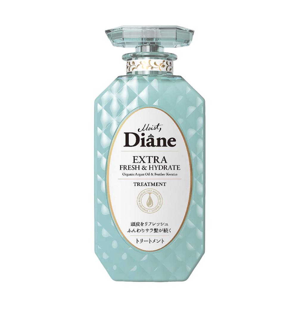 MOIST DIANE Perfect Beauty Fresh Hydrate Treatment nourishes the hair and treats damaged hair due to UV exposure. It has a citrusy herbal scent that is refreshing and gives off a cooling effect. This product is light and can help treat damaged and dry hair with ingredients like argan and sapote oil, leaving smooth and silky.