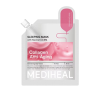 MEDIHEAL Collagen Anti-Aging Sleeping Mask is a nourishing overnight mask with a soft lotion formula to combat signs of aging. This mask provides collagen to the skin, helping to reduce wrinkles and promote a youthful, radiant appearance. With ingredients like 5% niacinamide, panthenol, and adenosine, it hydrates, softens, and revitalizes the skin overnight. The mask strengthens the skin barrier and enhances elasticity while being gentle on sensitive skin.