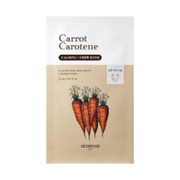 SKINFOOD Carrot Carotene Calming Mask is a pure cotton waffle fabric mask soaked full of essence. The carrot carotene line soothes irritated skin and this mask locks in moisture for extremely dry skin. Obtained from Daucus Carota Sativa seed oil, beta-carotene has an excellent effect on improving skin health.