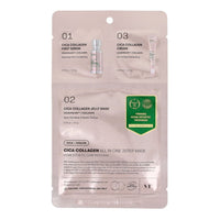 VT Cica Collagen All In One 3 Step Mask provides comprehensive care for dry and rough skin, targeting firmness, elasticity, hydration, and calming effects. The Deer Collagen First Serum contains 10,000 ppm of low molecular collagen, delivering intense moisture to alleviate dryness. The Deer Collagen Jelly Mask uses a soft, flexible jelly sheet that adheres closely to the face, ensuring deep nourishment and hydration. Lastly, the Deer Collagen Cream forms a protective moisturizing barrier, locking in hydration and promoting a firm, supple skin texture. Together, these products work synergistically to improve skin resilience and vitality.