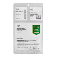 VT Reedle Shot All-In-One 3-Step Mask is designed to deliver hydrating and elastic care deep into the skin. Each step contains VT’s CICA REEDLE™ which is made up of micro-sized mineral-derived particles that mimic microneedling treatments to help ingredients penetrate deeper into skin. Step 1 is the Reedle Shot 300, an essence formulated with moisturizing hyaluronic acid and collagen-boosting amino acids. Step 2 is the Reedle Shot Mask, a sheet mask drenched with peptides, panthenol and hyaluronic acid for smoothness and hydration. Step 3 is the Reedle Shot Lifting Cream, formulated with collagen and elastin to boost skin elasticity and lock in moisture.