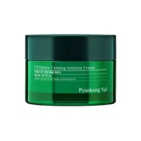 PYUNKANG YUL Ultimate Calming Solution Cream contains five ceramides, five hyaluronic acids, and hydrogenated lecithin, along with patented ingredients, to complete the ultimate calming skincare routine. This cream is certified effective for acne care, non-irritating, and has proven effectiveness on human skin, reducing blemishes by 13%, sebum by 47%, blackheads by 11.1%, and whiteheads by 9.2%. It includes ingredients for patent absorption, hydrogenated lecithin for glossy skin, and shea butter to strengthen the moisture barrier. The cream has a full-hydration formulation with microcapsules for slow penetration and long-lasting moisturization.