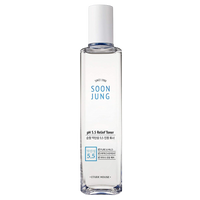 The SoonJung pH 5.5 Relief Toner uses 97% naturally derived ingredients and has a low pH of 5.5 to keep skin balanced and hydrated throughout the day
