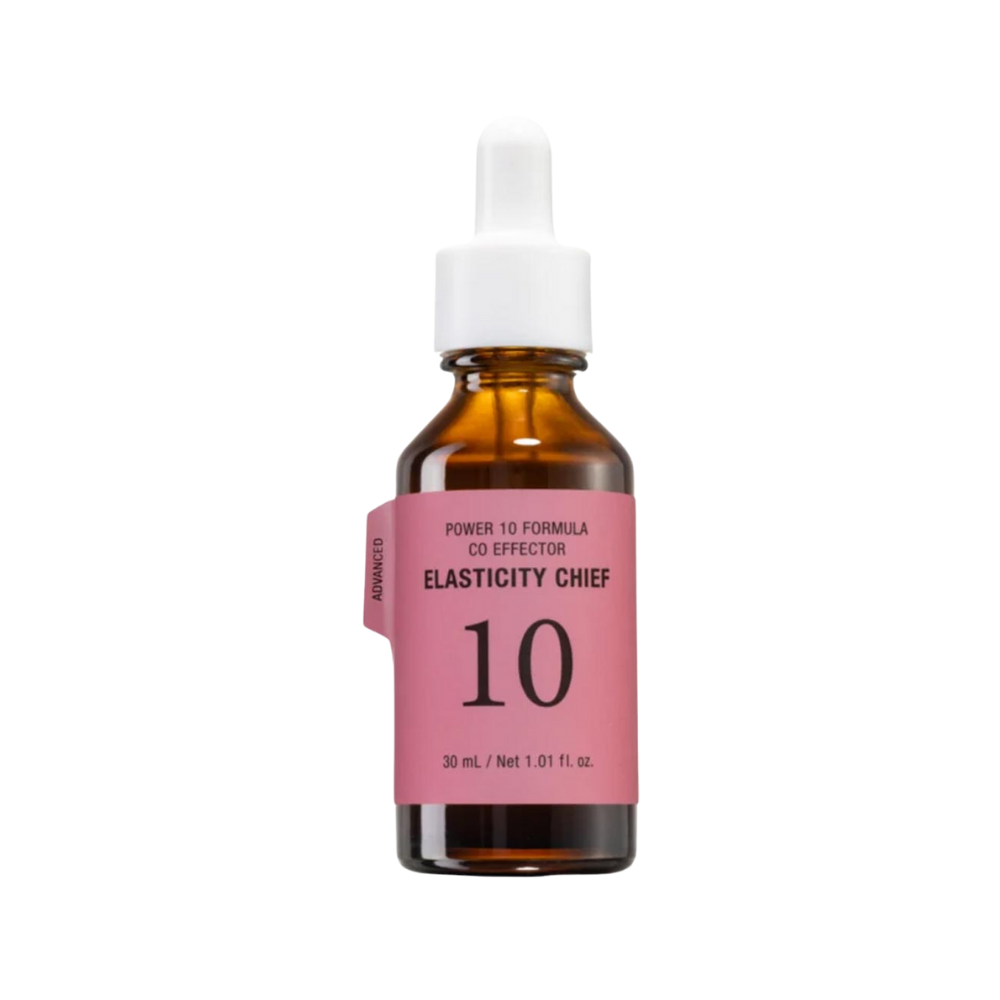 ITS SKIN Power 10 Formula CO Effector Elasticity Chief is renewed to be more powerful and gentler, featuring French collagen extracts and 2 types of peptides. It is a thick, elastic formula that leaves a hydrating film and boosts skin firmness and elasticity for a youthful glow. It is skin safety tested and suitable for all skin types but ideal for dry and mature skin types.